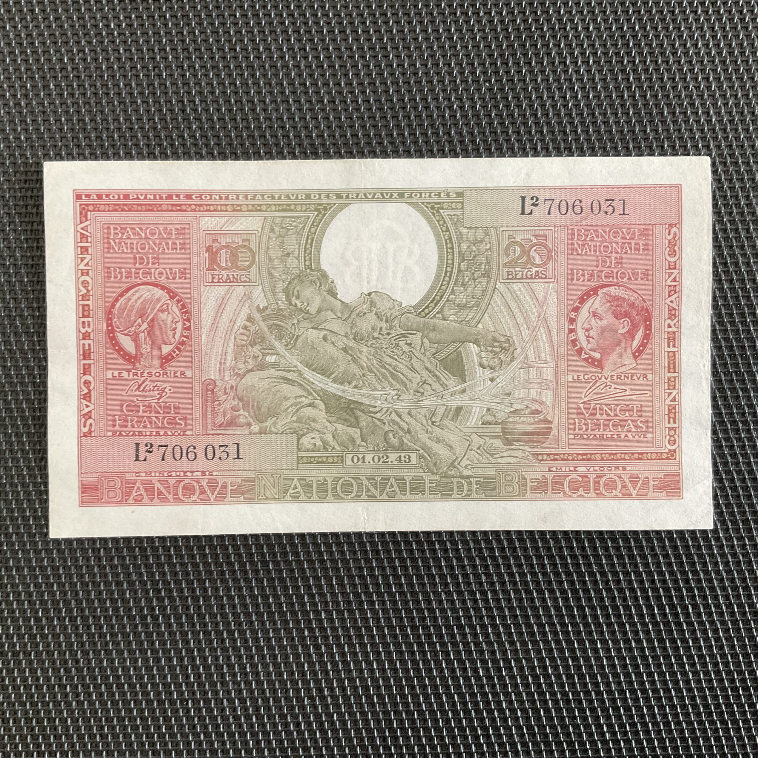 BELGIQUE: 100 francs 01/02/1943, Pick 123, SPL/AU