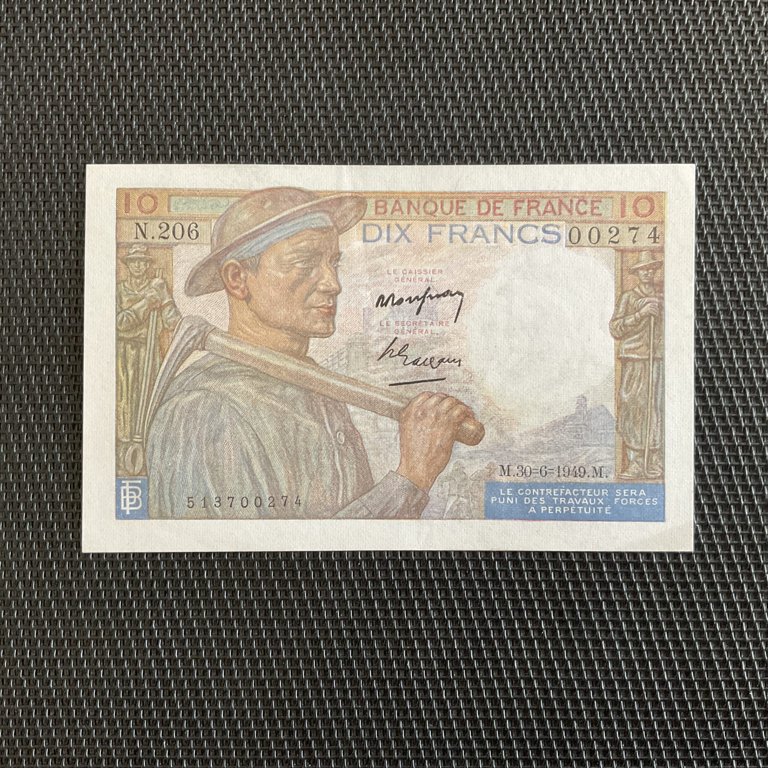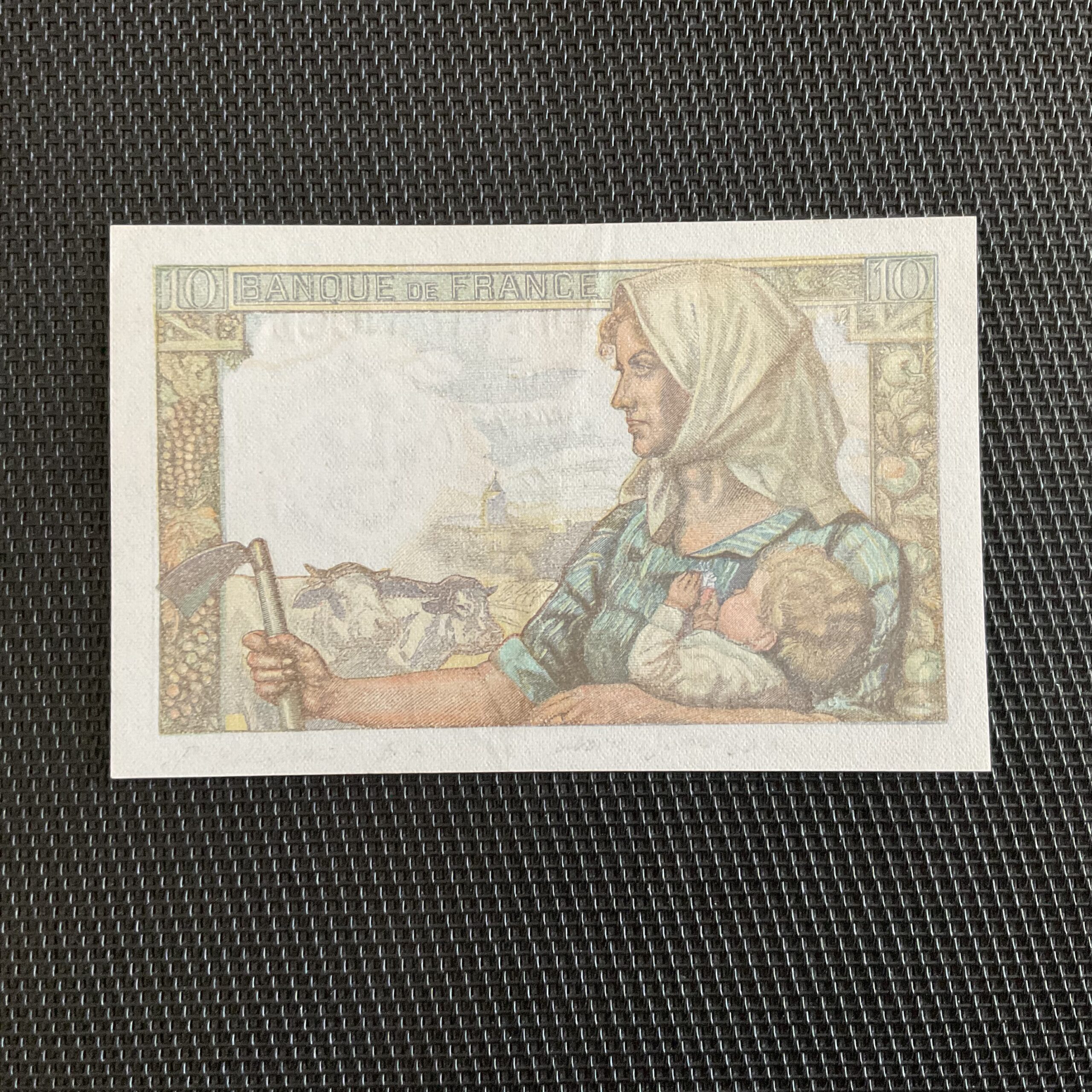 Aucun épinglage, pli central léger. Rare.