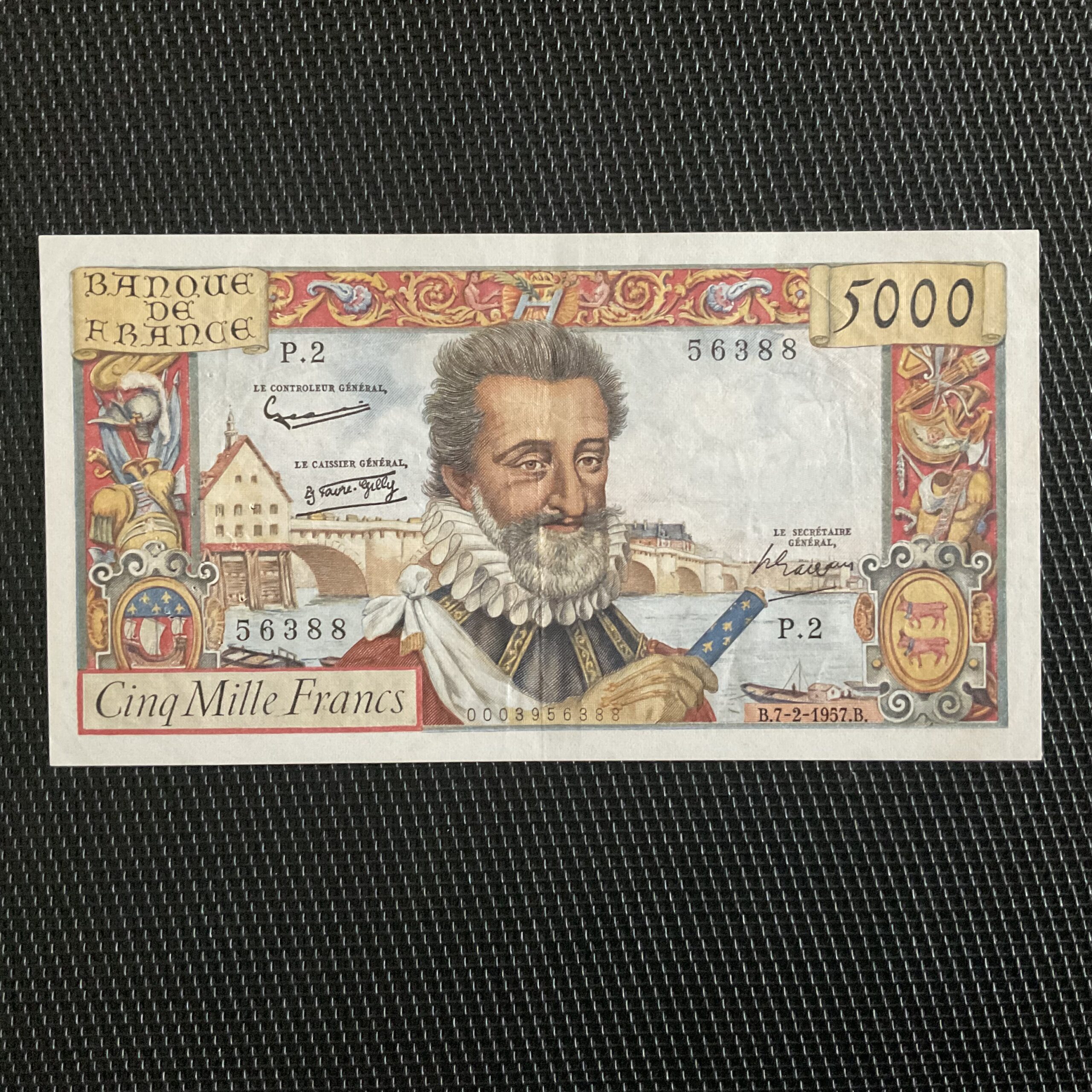 Frais et craquant d’origine. plusieurs épinglages fins et propres partie gauche du billet.